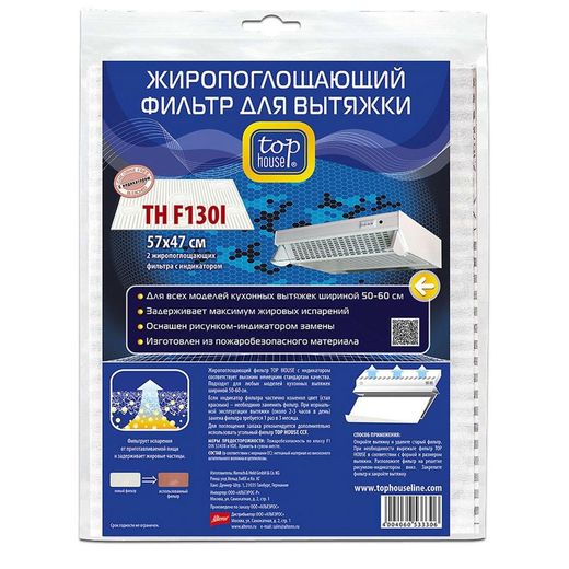 Фильтр для вытяжки жиропоглощающий с индикатором TOP HOUSE TH F 130i, 2 шт 57х47 см 392906